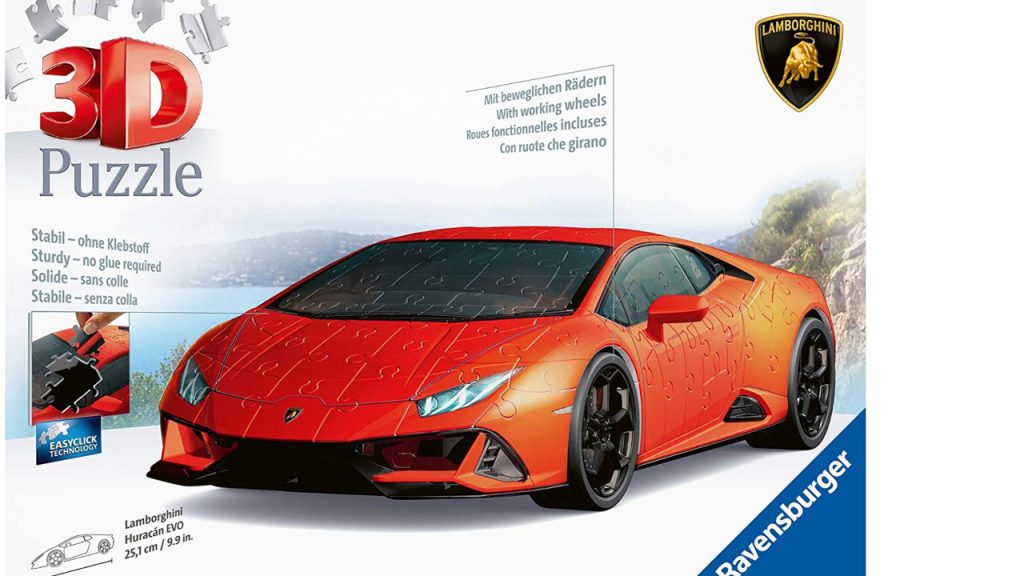 Having one of Lamborghini’s Huracán EVOs parked in the garage isn’t exactly within every car enthusiast’s reach. But one of the marque’s newest collaborations gets buyers a step in the right direction for a fraction of the price. Produced in collaboration with German toymaker Ravensburger, the Italian automotive powerhouse has created a 1:18 scale 3-D puzzle modelled on the famous car. While it may not be capable of reaching the original’s breakneck speeds, it does have its same sleek silhouette and bold red-orange hue, which come together via 108 individual pieces––each component made from premium, durable plastic. Once complete, the model measures about 25 cm long by 13 cm wide.