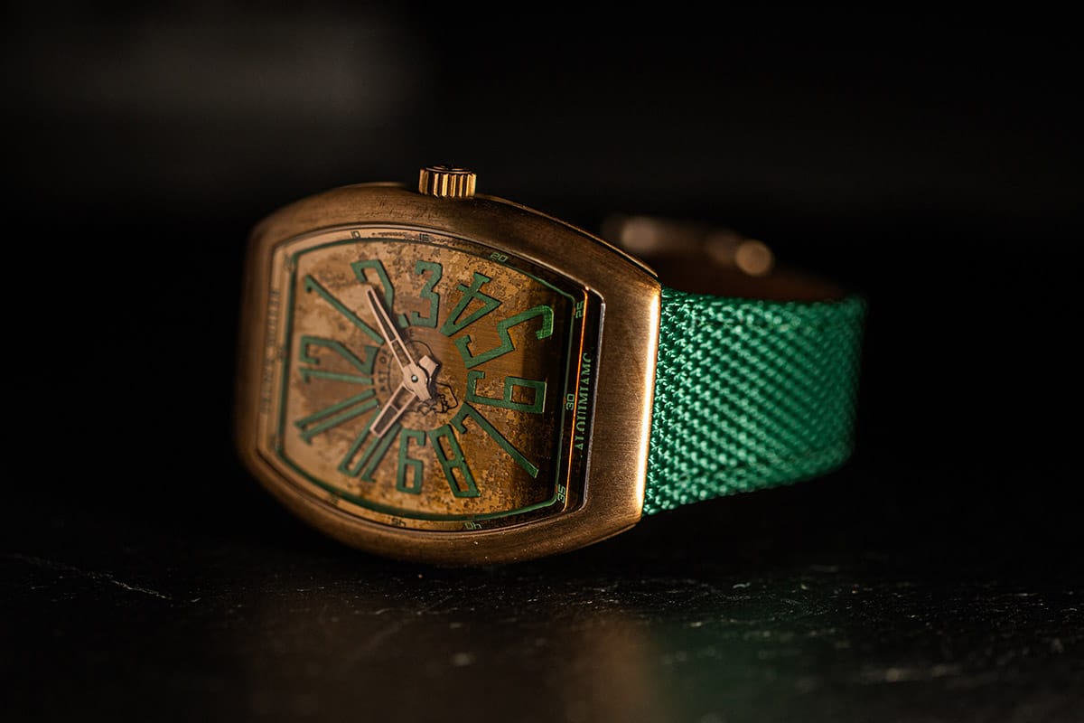 The Vanguard Alquimiamc is presented in two distinct models: one featuring a minimalist dial that accentuates the sculptural beauty of bronze, and another adorned with numerals in vivid green, creating a striking dialogue between tradition and modernity. Limited to 15 pieces, the Vanguard Alquimiamc is available exclusively in Mexico.